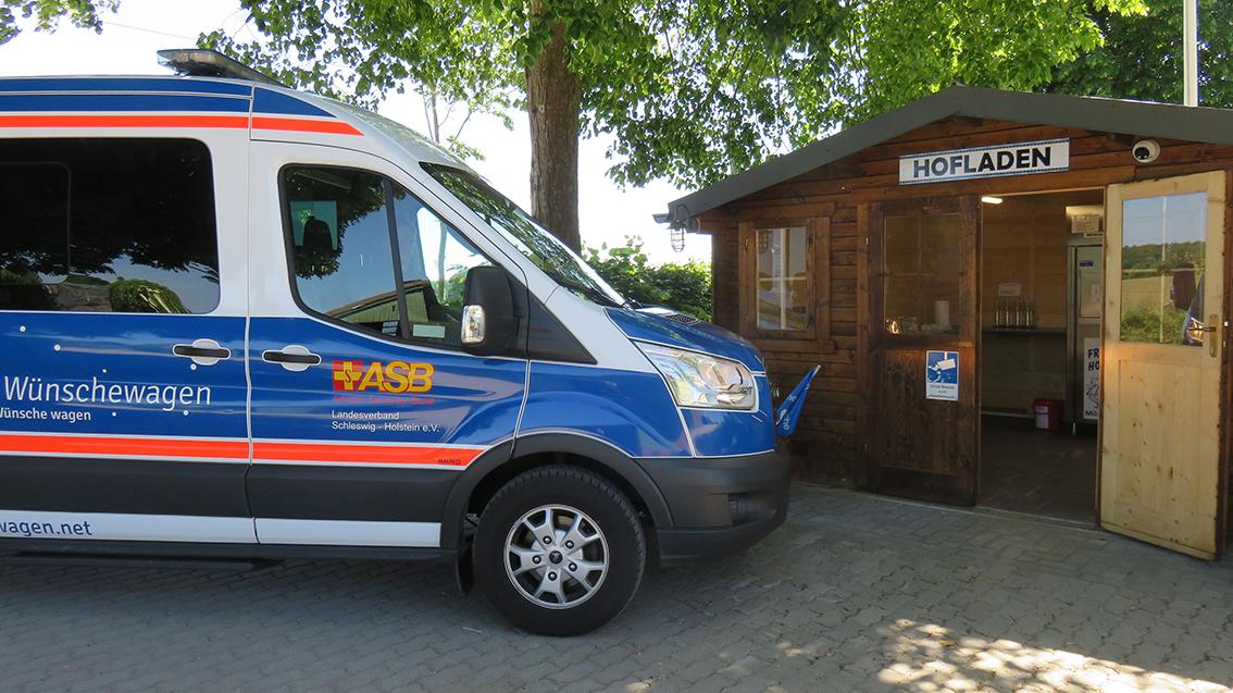 Bevor der Wünschewagen seinen Rückweg nach Elmshorn antreten konnte, wurden die Helfer von ihrem Sohn noch dazu eingeladen, als kleines Dankeschön etwas aus dem familieneigenen Hofladen auszusuchen, um die Rückreise gestärkt anzutreten. Selbstgemachter Honig und Käse, da sagte niemand nein!