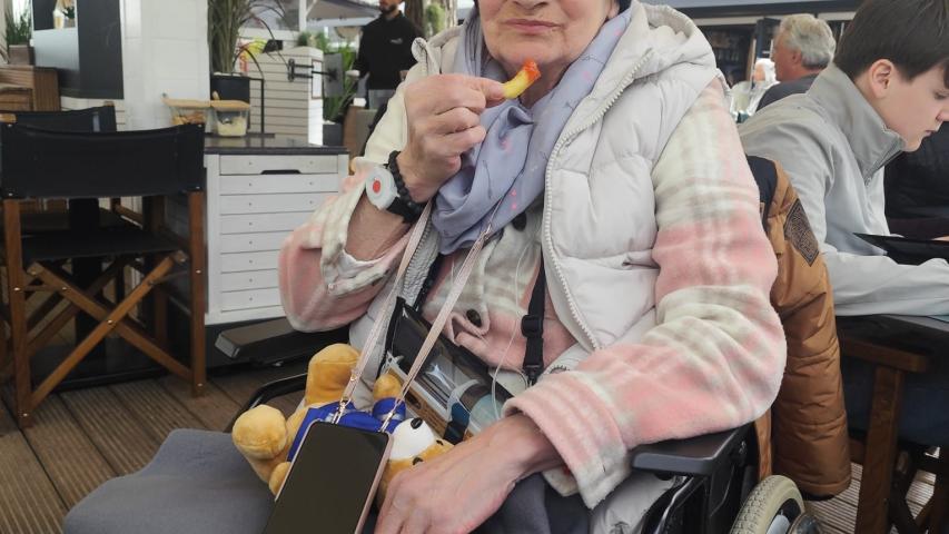 Zum Essen zog es uns in eine Strandbar – es gab Pommes und alles, was das Herz begehrte. Die Müdigkeit war Frau B. anzusehen. Bevor es zum Wünschewagen zurückging, bummelten wir noch über die Strandpromenade. Ein Besuch beim Italiener für ein Eis rundete den Tag ab, bevor es wieder zurück ins Hospiz ging.