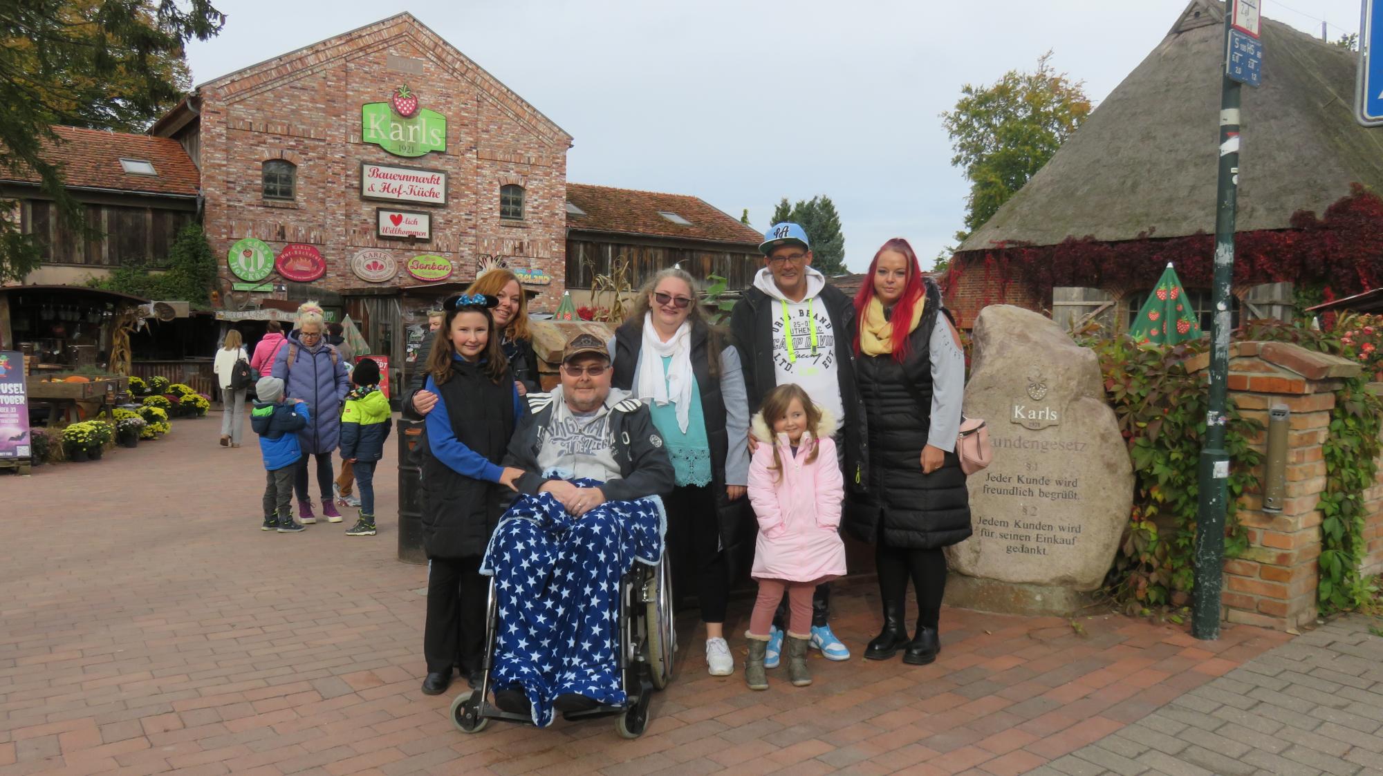 "Es ist sein guter Tag," sagte uns Rebecca, die Frau unseres heutigen Gastes, mit einem herzlichen Lächeln, als wir ankamen. Thorsten und seine Familie erwarteten uns freudig, gespannt auf den Ausflug zum Karls Erlebnis-Hof in Warnsdorf. Neben Thorsten begleiteten uns zwei seiner Töchter, und mit all den Gesprächen und dem Lachen verging die Fahrt wie im Flug.
