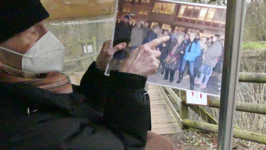 Auch die anderen Kollegen von Herrn S. sind gekommen, um den Kollegen noch einmal zu sehen. Zum Abschied überreichen sie ihm ein großes Foto der letzten Betriebsfeier.