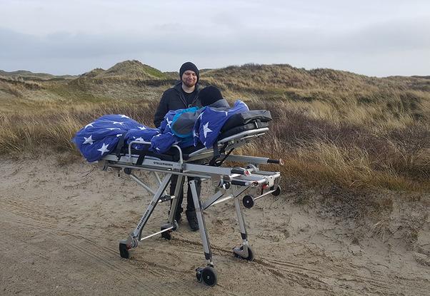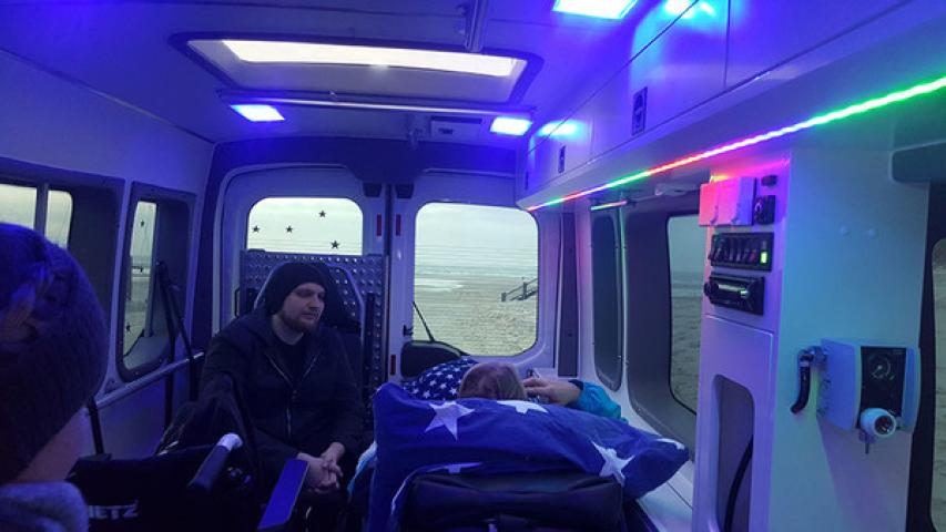 Einen Tagesausflug mit ihrem Sohn nach Amrum hat sich Frau H. gewünscht. Unsere Wunscherfüller Andre Bredemeier und Melanie Beiß holten die beiden in Begleitung von Krankenschwester Lisa-Marie Schirakow im UKSH in Kiel ab – lange vor Sonnenaufgang, um möglichst viel vom Tag zu haben.