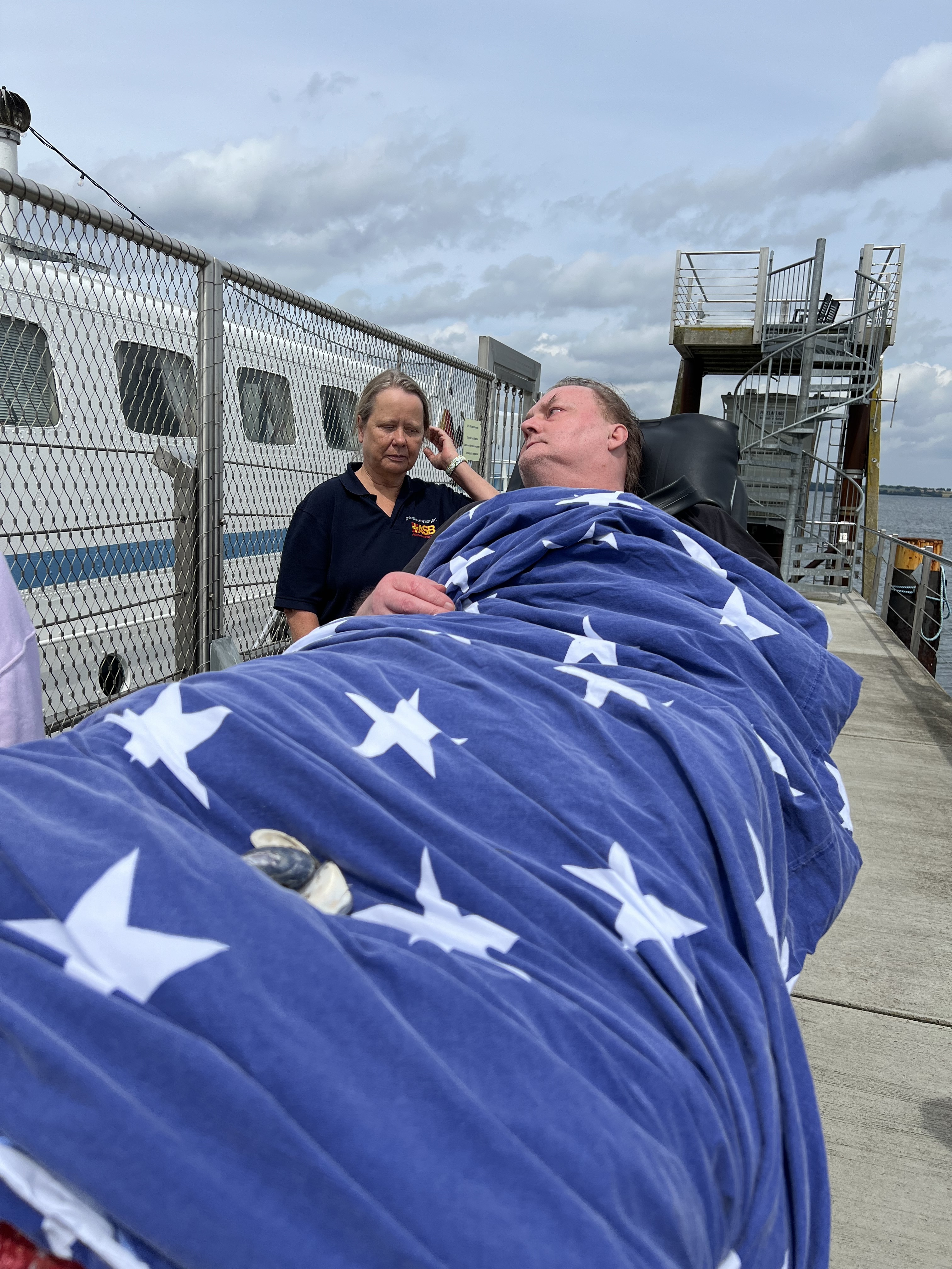 Dort erwarteten uns noch mehr Familienmitglieder dieser sympathischen Großfamilie. Wir brachten Uwe ans Meer, wo er sichtlich den Ausblick genoss und die frische Seeluft. Uwe hat seinen Humor nicht verloren trotz seiner schweren Krankheit und überraschte uns mehrmals mit einem flotten Spruch.