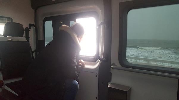 Um kurz nach 7 in der Früh ging die Reise los. Unser Fahrgast nebst Frau nahm im Wünschewagen Platz, seine drei Kinder, begleitet von Anja Ihben, im Mannschaftstransporter der FF Norderstedt. Da das erste Ziel Niebüll frühzeitig erreicht wurde, blieb noch Zeit für eine kleine Stadtrundfahrt. Während die drei Kinder im Regionalexpress nach Sylt fuhren, nahm der Rest der Gruppe mit dem Wünschewagen den DB Sylt Shuttle, welcher uns mal wieder hin und zurück komplett kostenlos beförderte. Dank bester Plätze genoss unser Fahrgast den freien Blick nach hinten raus.