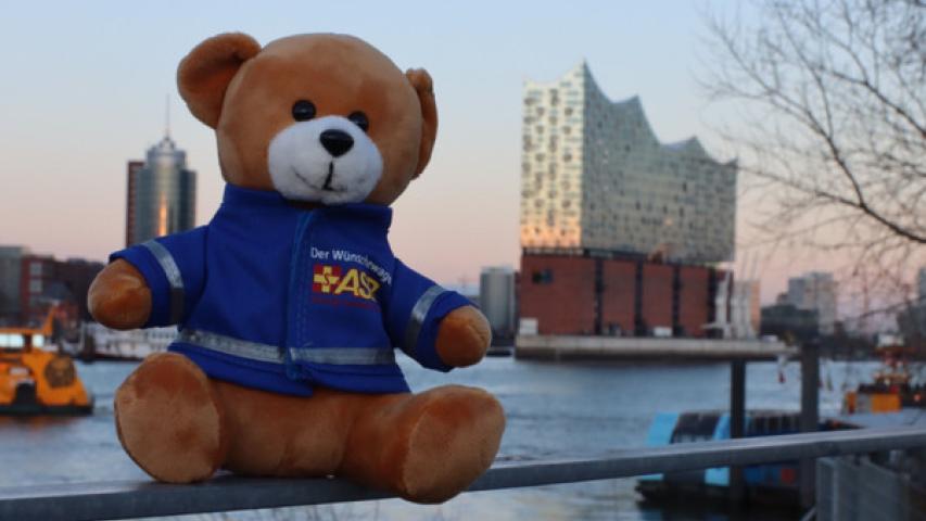 Bevor wir wieder den Heimweg antraten, wurden wir noch mit einem tollen Blick auf die Hamburger Skyline in der Abendsonne verwöhnt. Joana nutzte erschöpft, aber glücklich die Möglichkeit, im Wünschewagen, eingekuschelt in die Sternendecke, sich auszuruhen und zu schlafen. Hakuna Matata!
