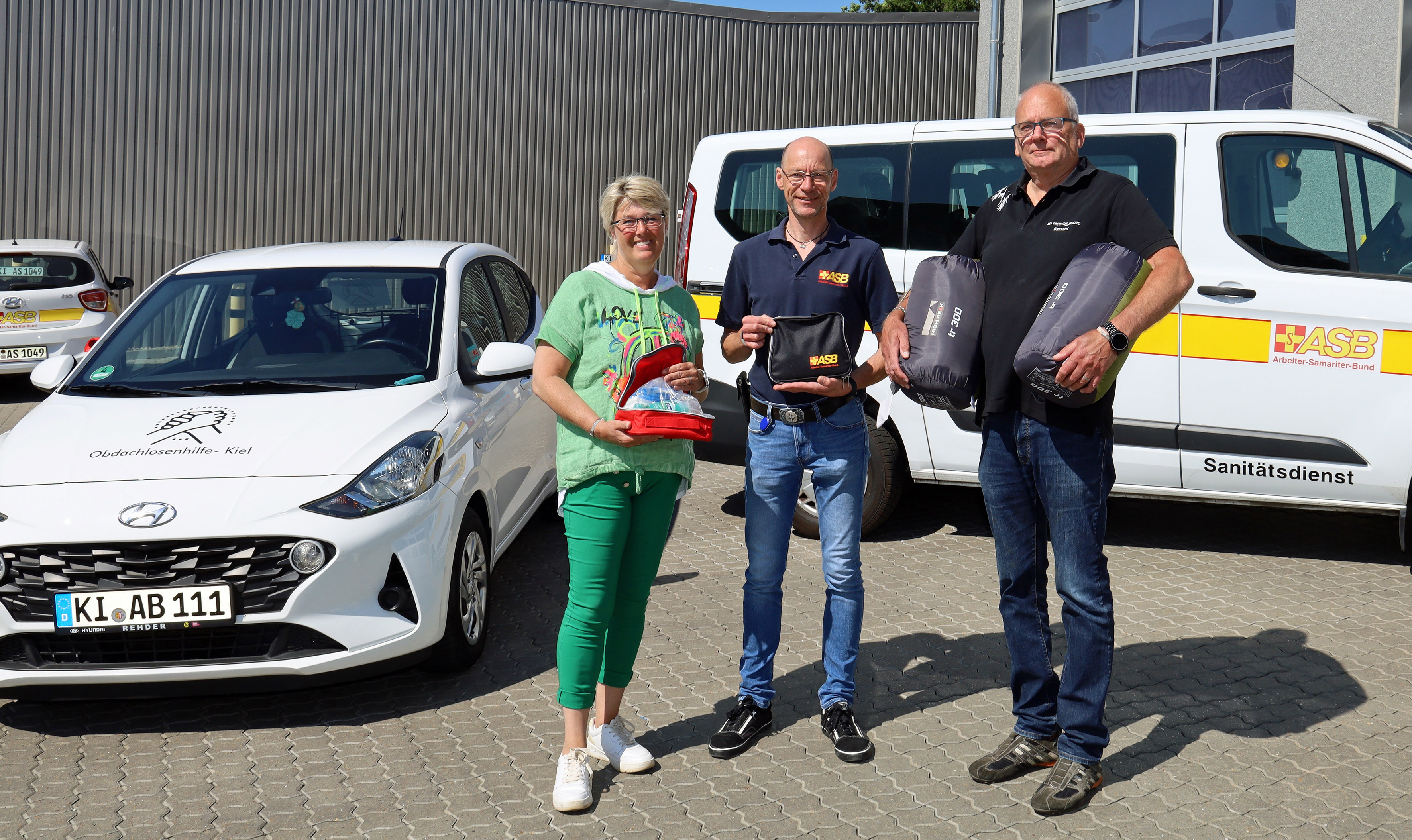 Der ASB Regionalverband Kiel spendete dem Obdachlosenhilfe-Kiel e.V. jetzt 20 wintertaugliche Schlafsäcke, die im Laden mindestens 100 Euro pro Stück kosten und erstmal gehortet werden, bis es draußen wieder kälter wird. Außerdem gab es 25 Hygienesets mit allem, was für Zahn- und Körperpflege wichtig ist. Die kleinen Taschen werden dann je nach Bedarf verteilt.